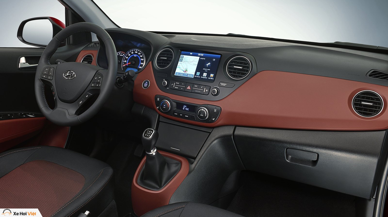 Nội thất có một vài thay đổi nhỏ, khách hàng có thể tùy chọn màu đỏ, xanh hoặc đen trên các chi tiết trang trí. Hệ thống giải trí màn hình cảm ứng 7 inch được tích hợp công nghệ kết nối Apple CarPlay và Android Auto. Khiến i10 2017 là chiếc xe đầu tiên trong phân khúc dùng công nghệ này.